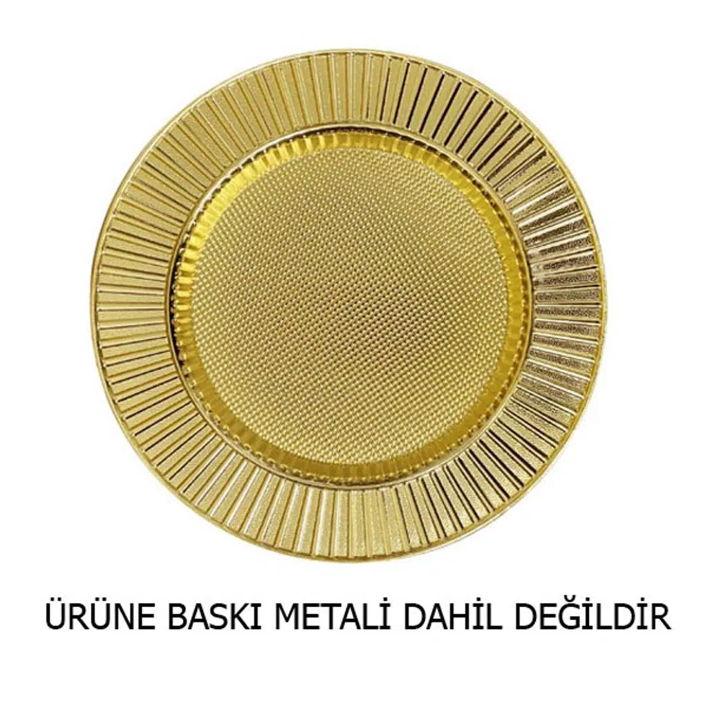 Ürün içeriği: 1 ad. 25 cm altın metal tabak (Ürün baskı metali , teşhir ayağı veya kutu içermez.)