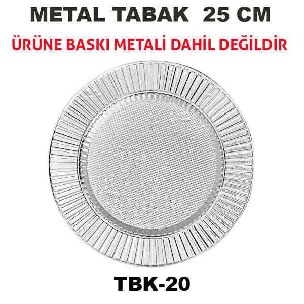 Ürün içeriği: 1 ad. 25 cm gümüş metal tabak (Ürün baskı metali , teşhir ayağı veya kutu içermez.)