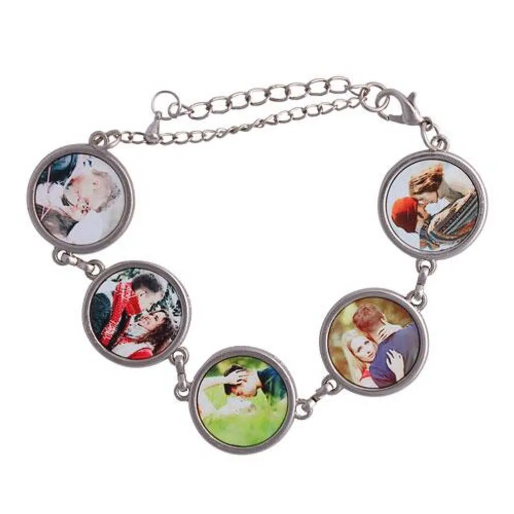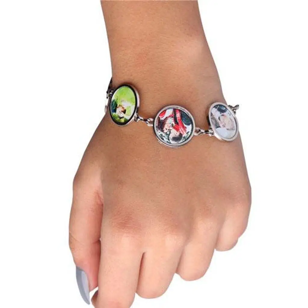 Ürün içeriği: 1 adet metal bileklik + 5 adet yuvarlak beyaz baskı metali