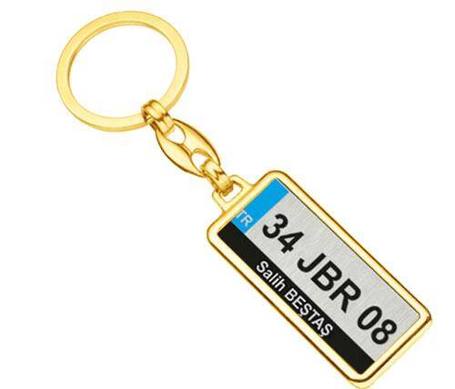 Ürün içeriği: 1 adet krom anahtarlık + 2 adet 1,6 x 5,2 cm beyaz baskı metali