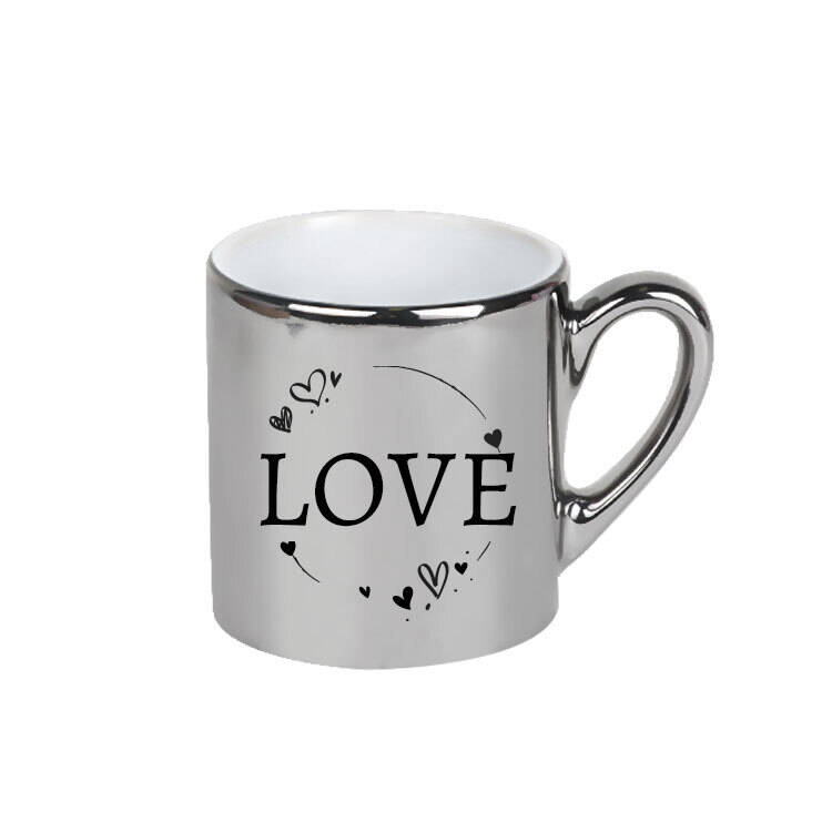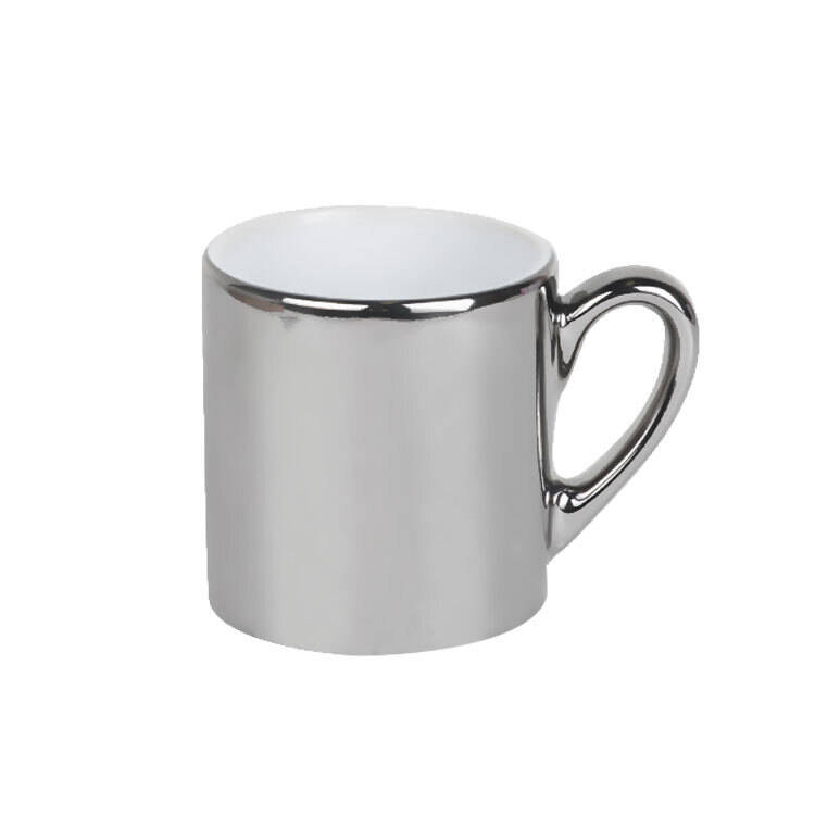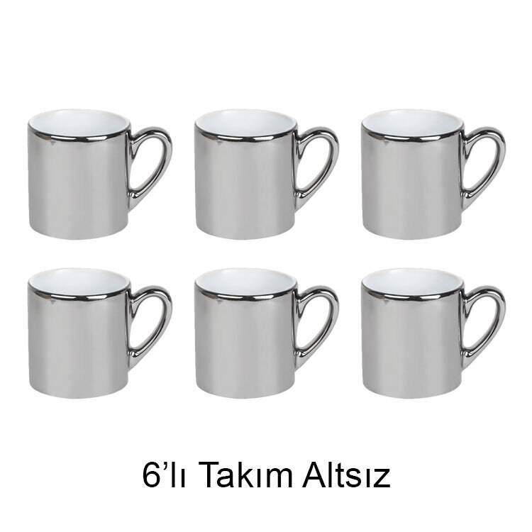 Süblimasyon Altsız Promosyon Porselen Türk Kahvesi Fincanı - 6'lı Aynalı Gümüş