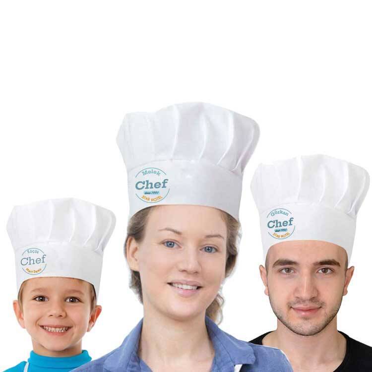 Sublimasyon baskıya uygun, çocuk, genç, ve yetişkinler için uygun ebatları bulunan, beyaz aşçı şapkası.