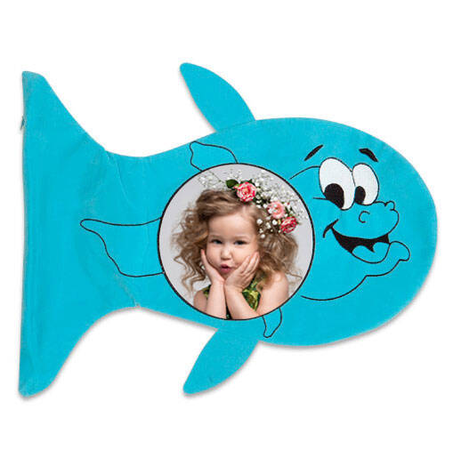 Özel süet kumaştan üretilmiş ,  kesim ve dikimi balık şeklinde yapılmış  , çocuklar için özel tasarlanmış hediyelik yastık