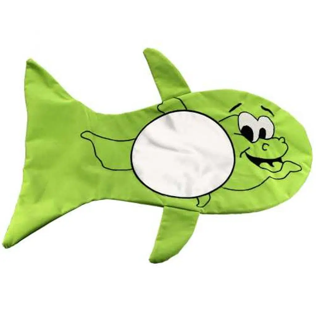 Sublimasyon baskıya uygun, özel süet kumaştan üretilmiş kesim ve dikimi balık şeklinde yapılmıştır. Çocuklar için özel tasarlanmıştır. Yeşil renkte bir yastık kılıfıdır.