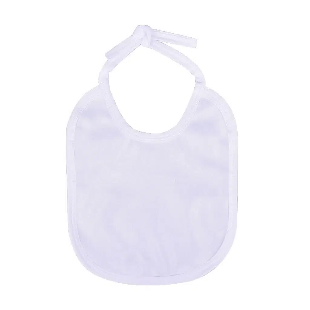 Süblimasyon transfer baskı sistemine uyumlu özel olarak üretilmiş, beyaz biyeli bebek önlüğü. İstediğiniz görseli transfer baskı yapabilirsiniz.