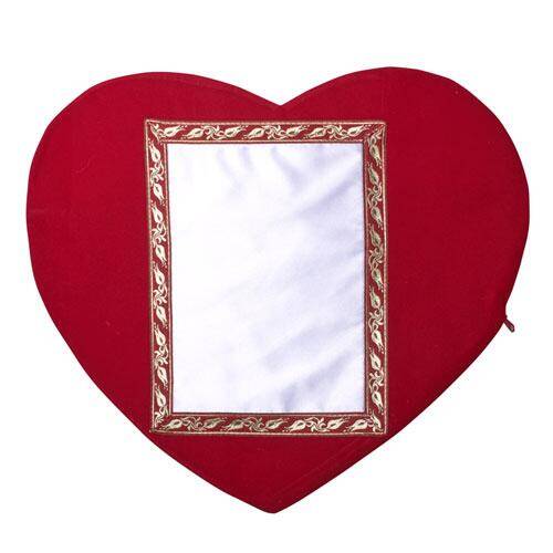 Sublimasyon baskıya uygun, kadife malzemeden üretilmiş kalp şeklinde kırmızı renkli bir yastık kılıfıdır.