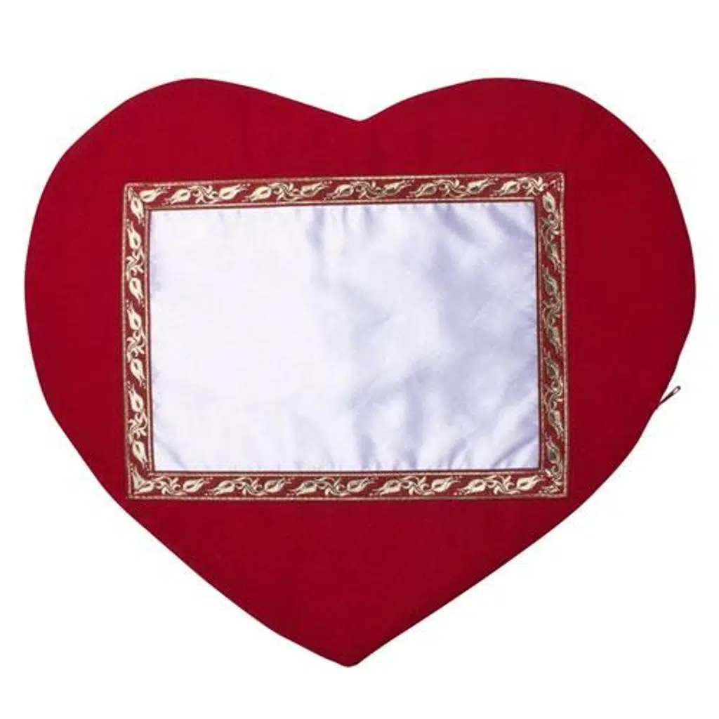Sublimasyon baskıya uygun, kadife malzemeden üretilmiş kalp şeklinde, kırmızı renkte bir yastık kılıfıdır.