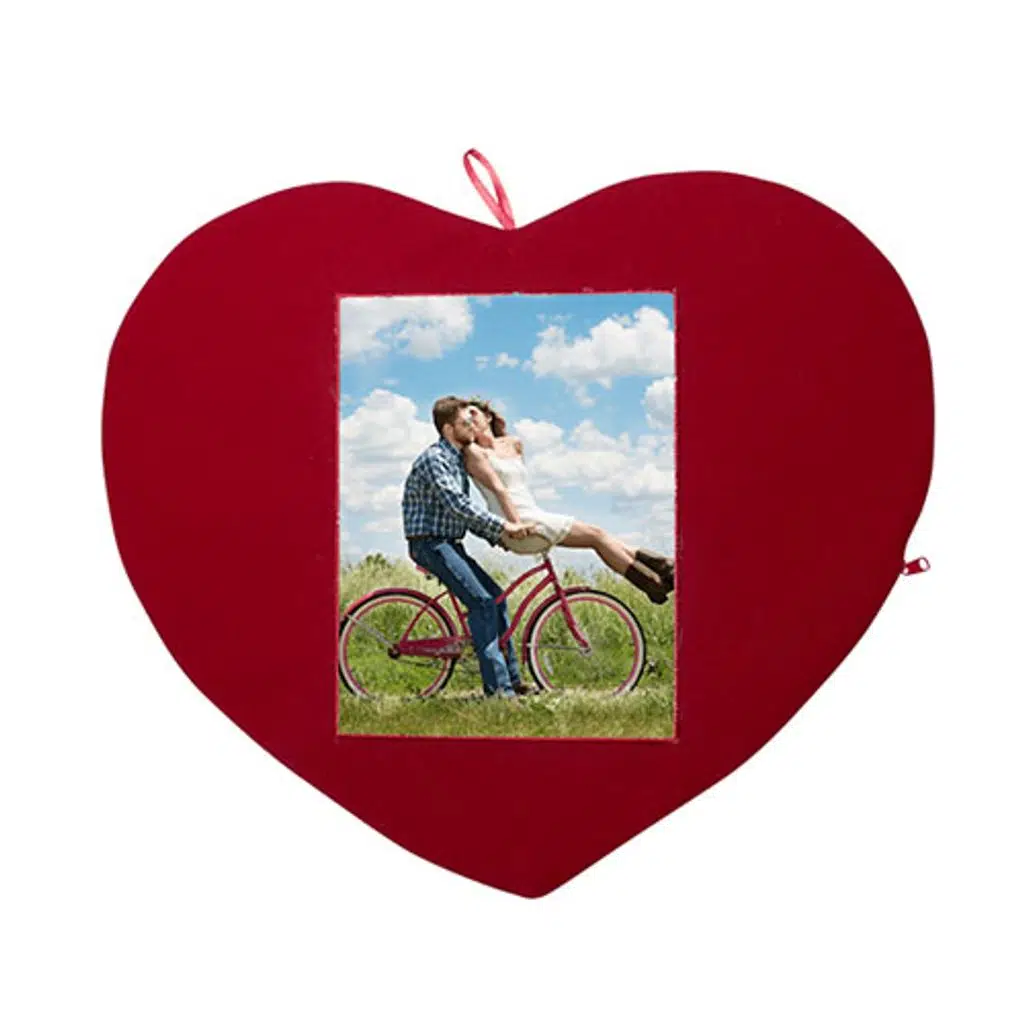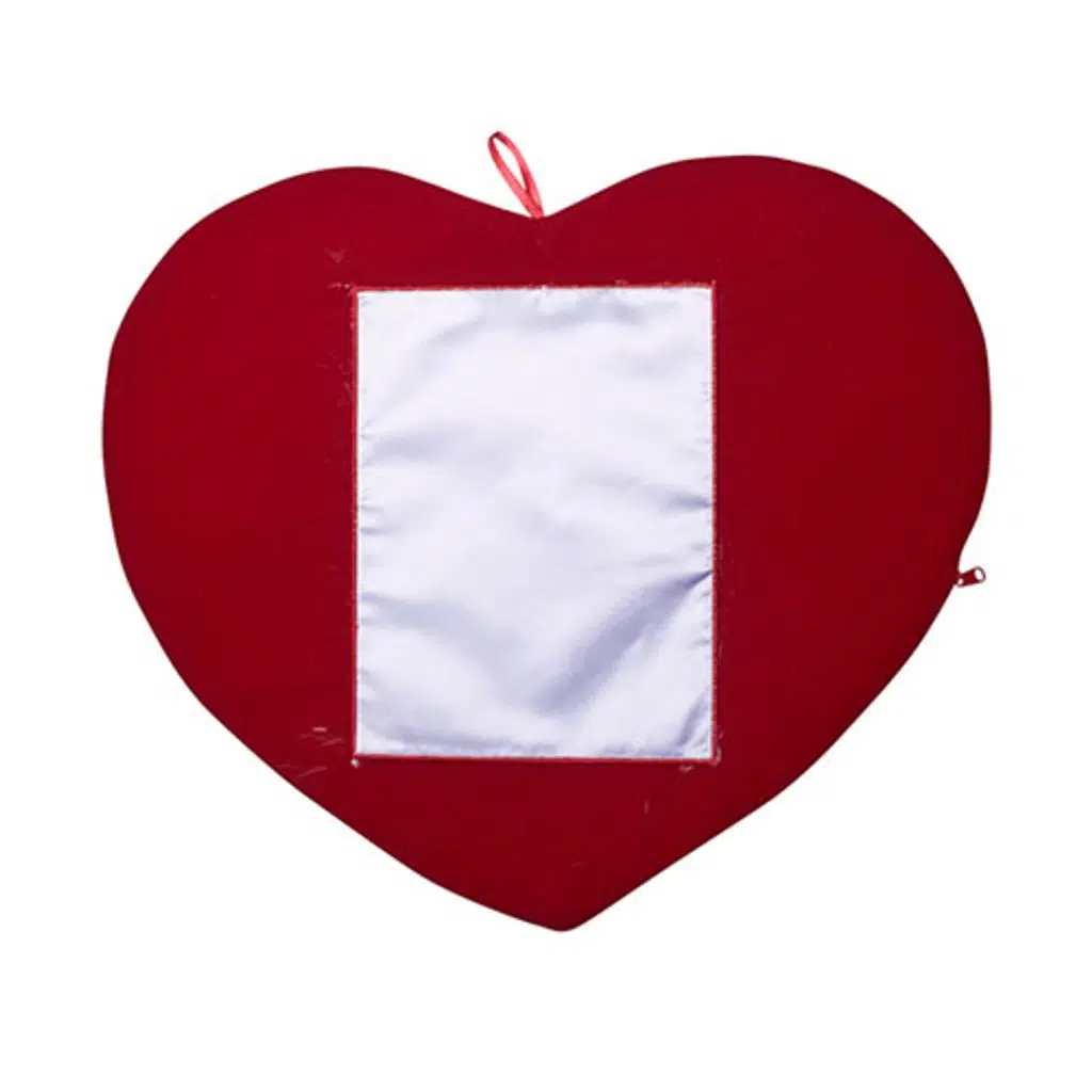 Sublimasyon baskıya uygun, kadife malzemeden üretilmiş kalp şeklinde, kırmızı renkli bir yastık kılıfıdır.