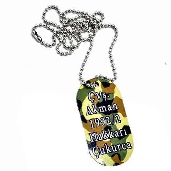 Sublimasyon asker künyesi metal ve zincir olarak iki parça halinde size gelir.