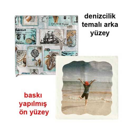 Sublimasyon ve lazer transfer baskıya uygun deniz yıldızı desenli bir yastık kılıfıdır. Özel kumaştan üretilmiştir. Ön yüzünde denizcilik ile ilgili desenler bulunan yastığın, arka yüzüne sublimasyon ya da lazer transfer baskısı yapılabilmektedir.