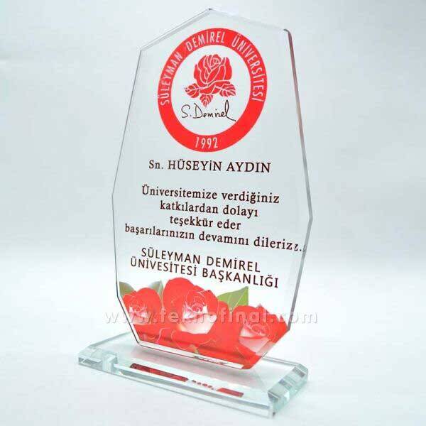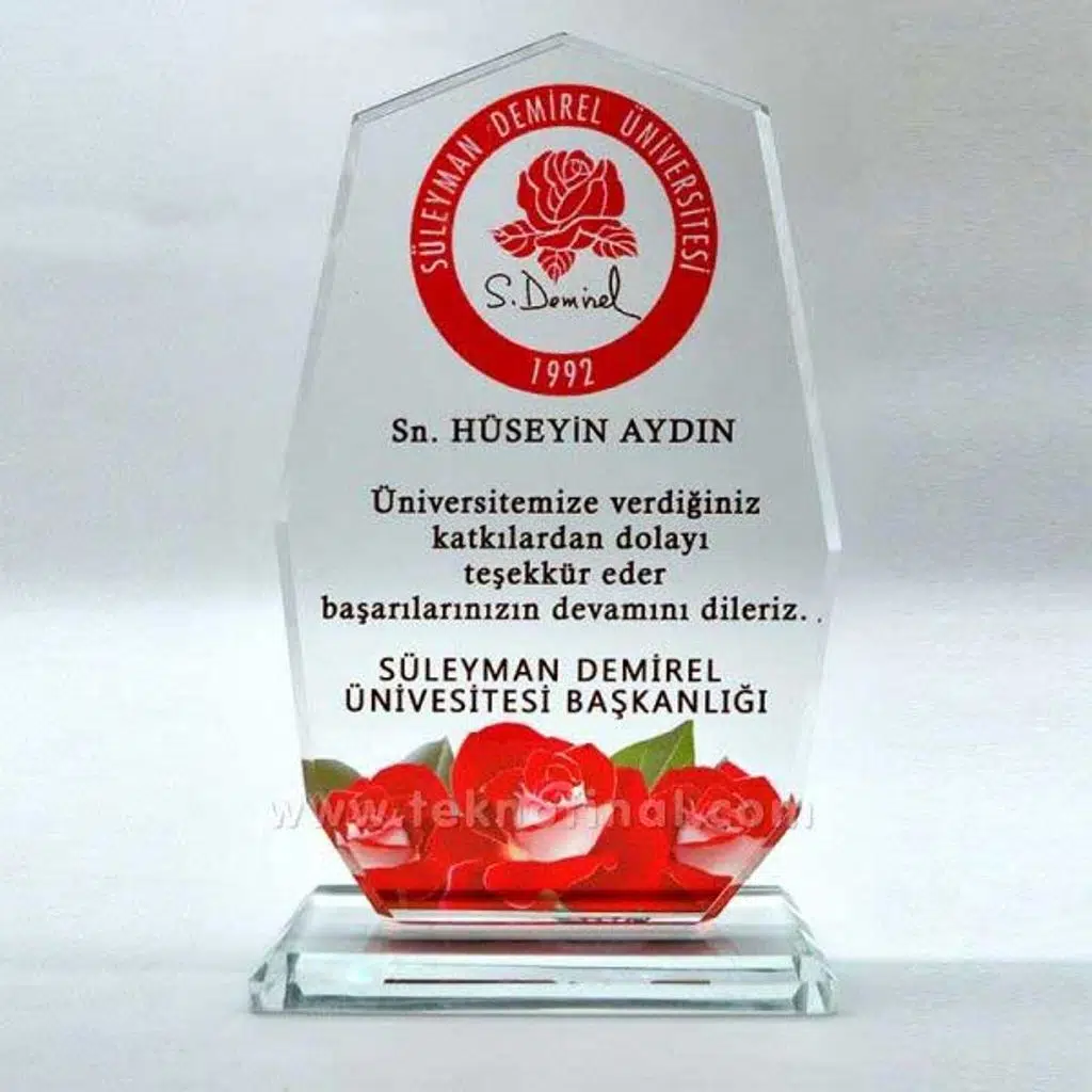 Bu plaketin en iyi özelleği sublimasyon beyaz baskı zemini yerine şeffaf şekilde basabilmenizdir.