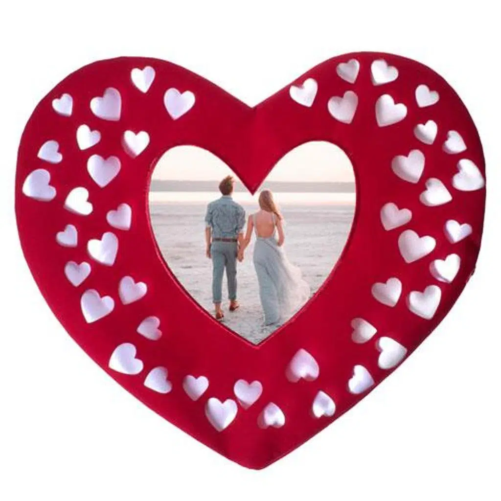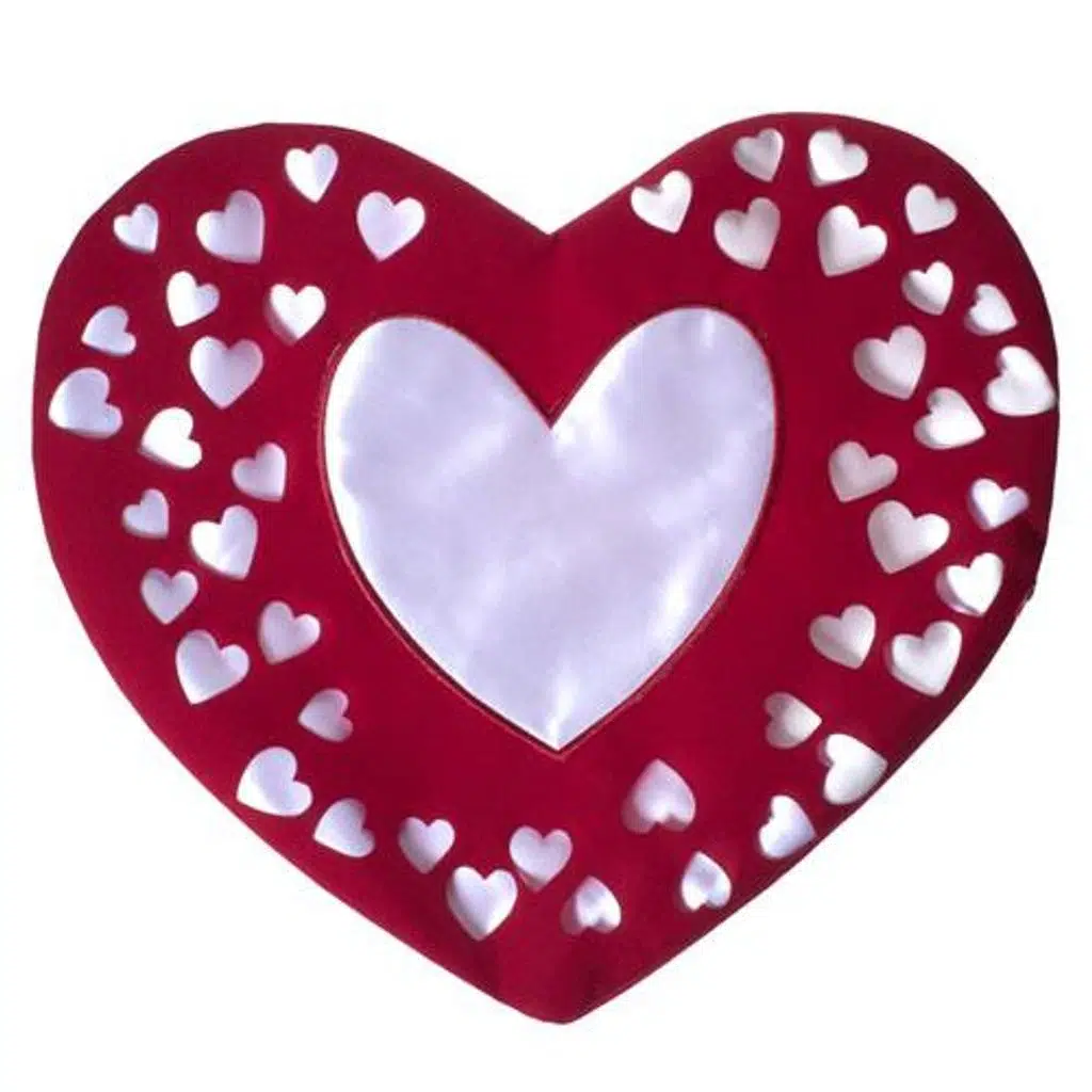 Sublimasyon baskıya uygun, lazer kesim kadife bir kalp yastık kılıfıdır.