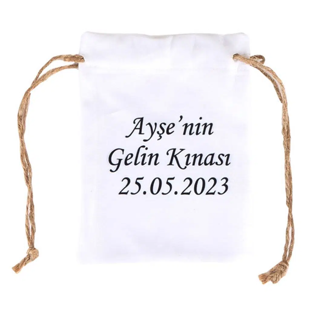 Sublimasyon baskıya uygun olarak üretilmiş olan hasır ipli bir kese modelidir. Kına, düğün gibi özel günlerin vazgeçilmez aksesuarlarından biridir.