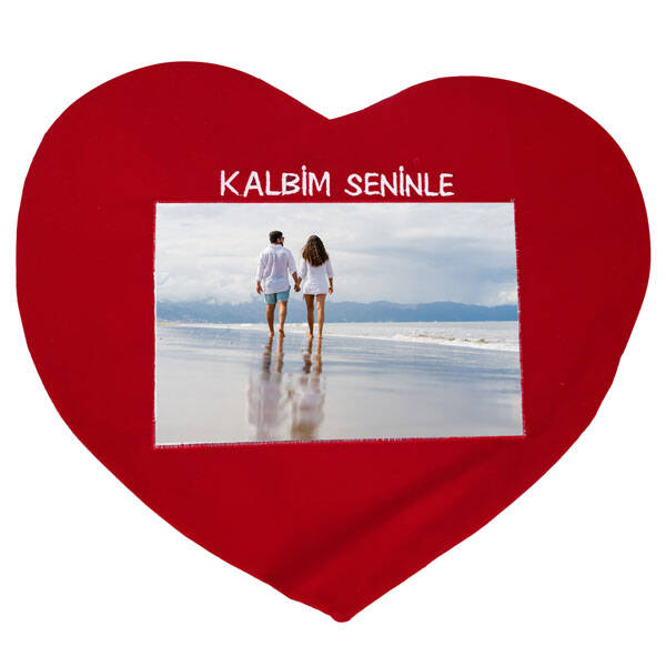 YAS-79 KIRMIZI KADİFE KALP YASTIK (Kalbim Seninle Logolu)