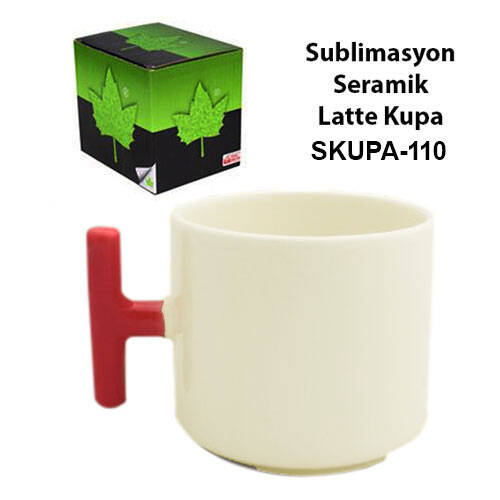 Sublimasyon Kırmızı Kulplu Seramik Latte Kupa - Kutulu