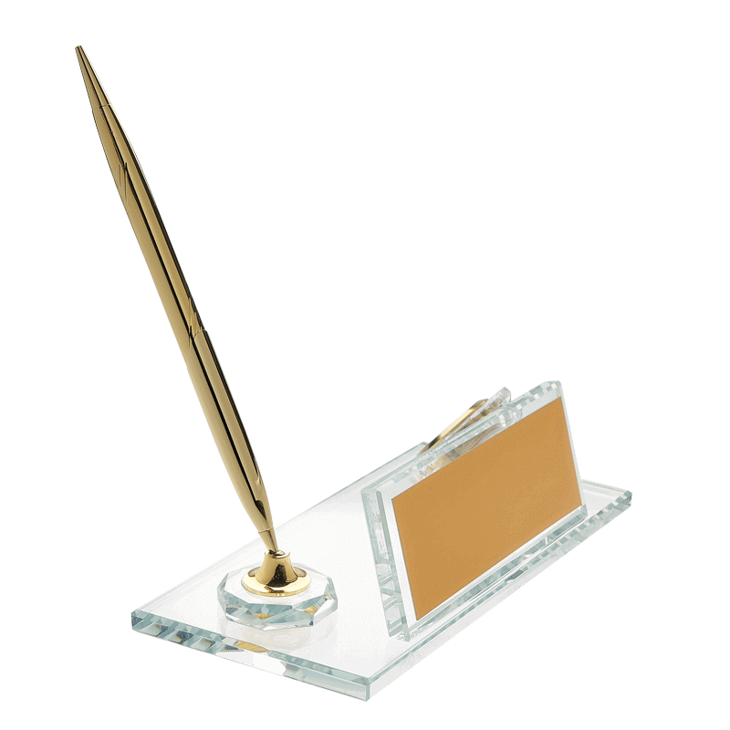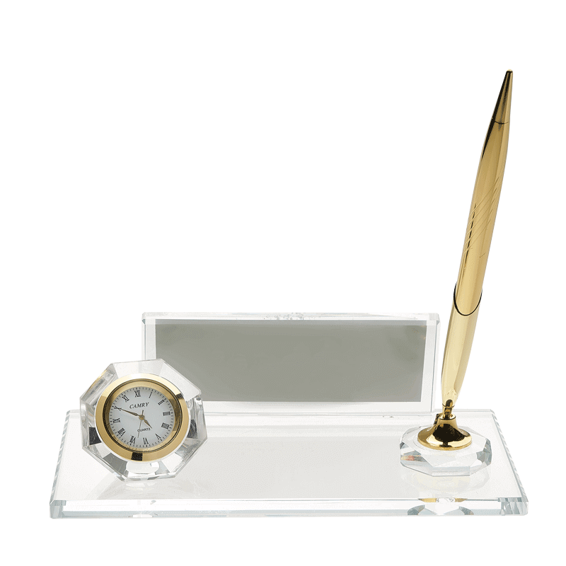 Ürün içeriği: 1 adet kristal masa isimliği + 1 adet altın kalem + 1 adet altın baskı metali + 1 adet kraft kutu