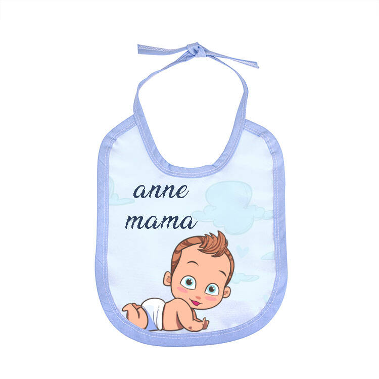 Süblimasyon transfer baskı sistemine uyumlu özel olarak üretilmiş, erkek çocukları için uygun mavi bebek önlüğü. İstediğiniz görseli transfer baskı yapabilirsiniz.