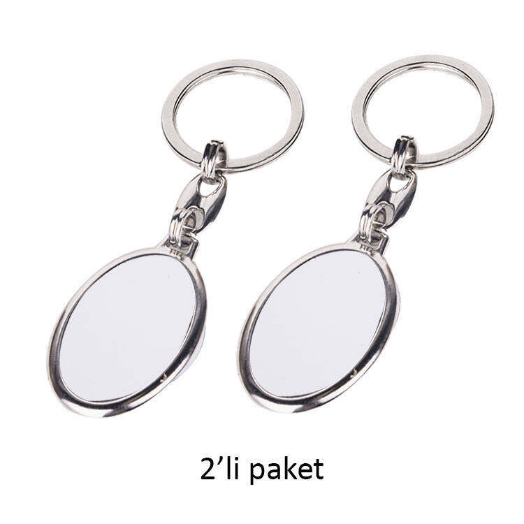 2'li paket halinde satılan, süblimasyon baskı sistemine uygun toptan tek taraflı oval metal anahtarlıkların metalin beyaz alanına baskı yapılmaktadır.
