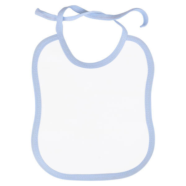 Sublimasyon ve lazer transfer baskıya uyumlu olarak üretilen mavi biyeli bir mama önlüğüdür. Mikropolyester ve pamuk karışımı özel bir malzemeden üretilmiştir.