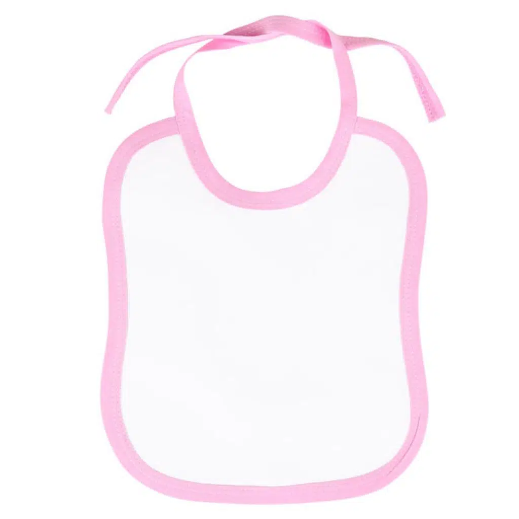 Sublimasyon ve lazer transfer baskıya uyumlu olarak üretilen pembe biyeli bir mama önlüğüdür. Mikropolyester ve pamuk karışımı özel bir malzemeden üretilmiştir.