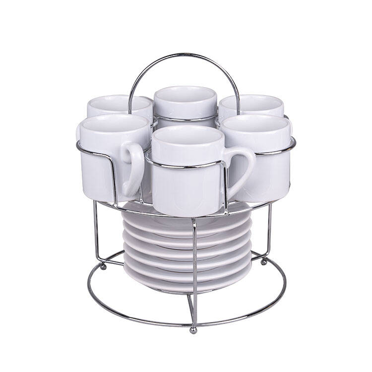 Toptan Süblimasyon Papatya Standlı Türk Kahve Fincan Takımı - 6'lı Beyaz