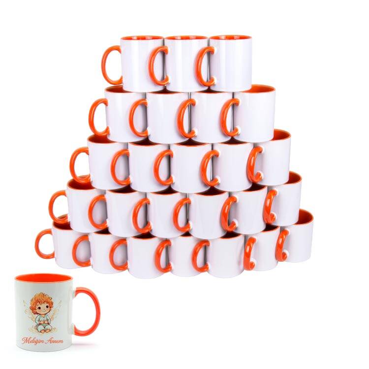 Gözde hediyelik türlerinden biri olan içi renkli kupa bardak üzerine tasarımlarınızı canlı bir şekilde transfer edebilirsiniz. Kolisi 36 adettir toptan turuncu kupa siparişlerinizi koli bazında veya katları olarak sipariş veriniz, bu sayede kırılma riski azalacaktır.