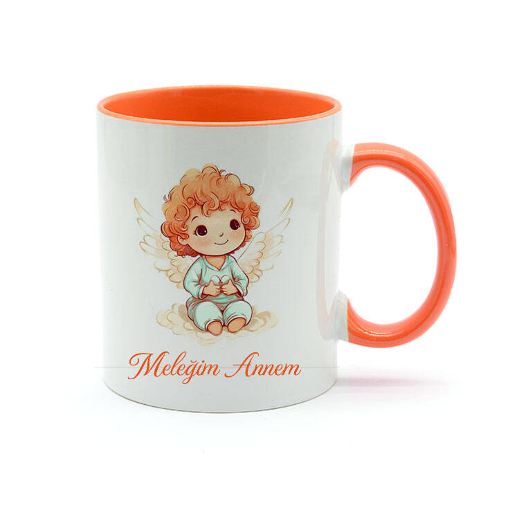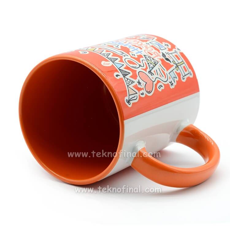 Süblimasyon Porselen Kulpu ve İçi Turuncu Kupa
