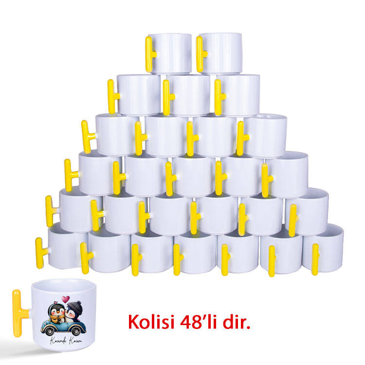 1 Koli Kutusuz Süblimasyon Porselen Sarı Kulplu T Kupa Bardak