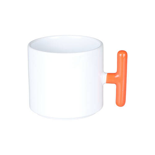Sublimasyon ve lazer transfer baskıya uygun özel kaplamalı T turuncu kulplu kupa modelidir.