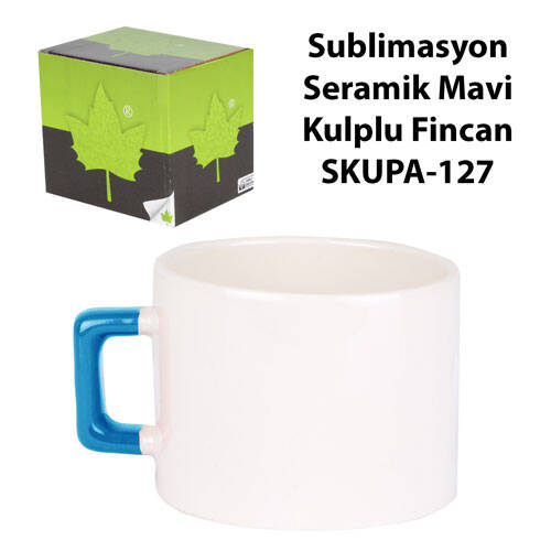 Sublimasyon Seramik Mavi Kulplu Lüks Fincan - Kutulu