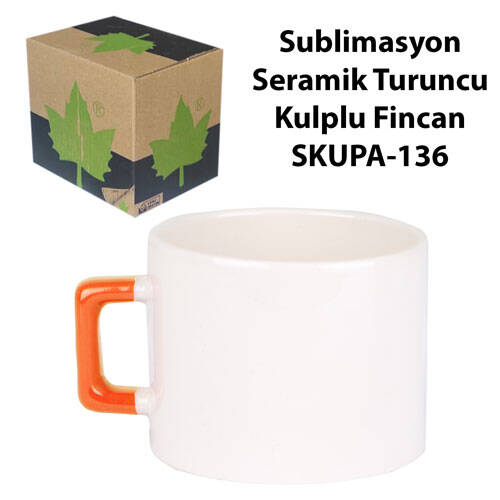 Sublimasyon Seramik Turuncu Kulplu Lüks Fincan - Kutulu