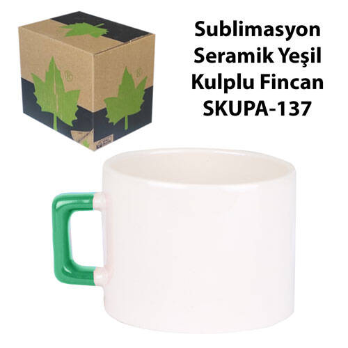 Sublimasyon Seramik Yeşil Kulplu Lüks Fincan - Kutulu