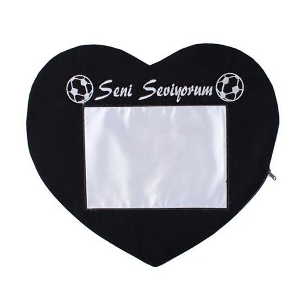 Sublimasyon Taraftar Kalp Yastık - Siyah Beyaz