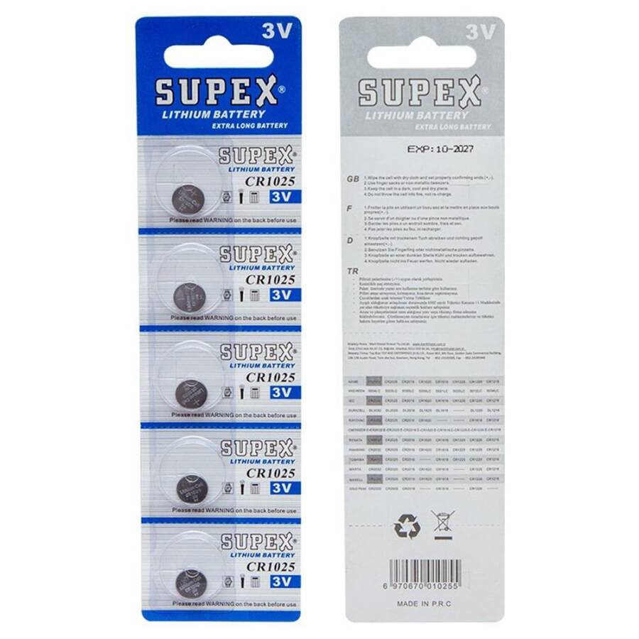 5 adet Supex CR1616 lityum düğme pil.