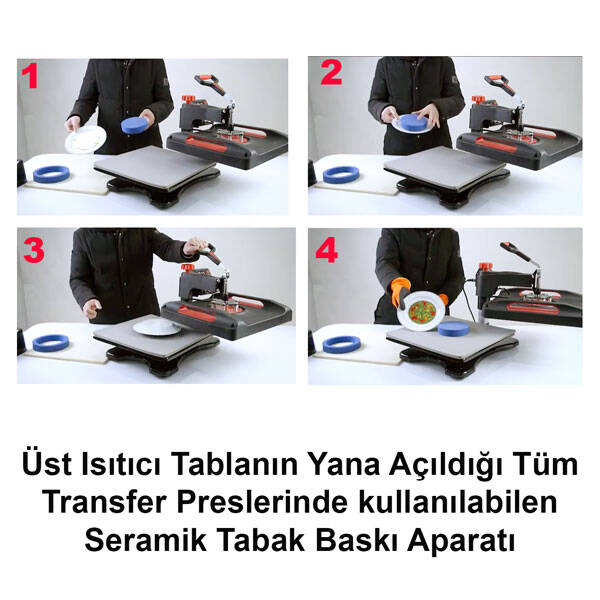 Üst tablanın yana doğru açıldığı tüm transfer preslerinde seramik tabak baskısı yapmak için kullanabileceğiniz aparattır.