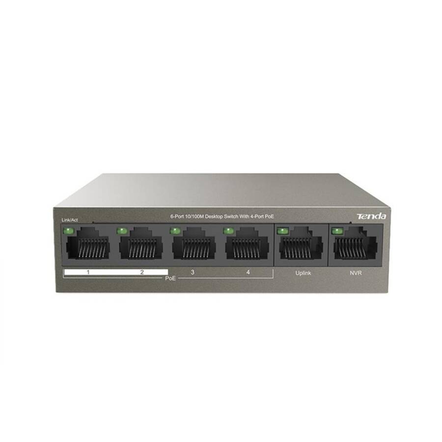 Tenda TEF1106P, IP kamera sistemleri, erişim noktaları ve VoIP telefonlar gibi cihazlar için tasarlanmış PoE+ destekli Fast Ethernet switch modelidir. 4 adet PoE+ portu ile cihazlarınıza hem veri hem de güç aktarımı sağlar. Ayrıca 2 adet uplink portu sayesinde ağınızı genişletme imkânı sunar. Sağlam çelik kasa ve rack mount uyumluluğu ile profesyonel kurulumlarda uzun ömürlü kullanım sağlar.