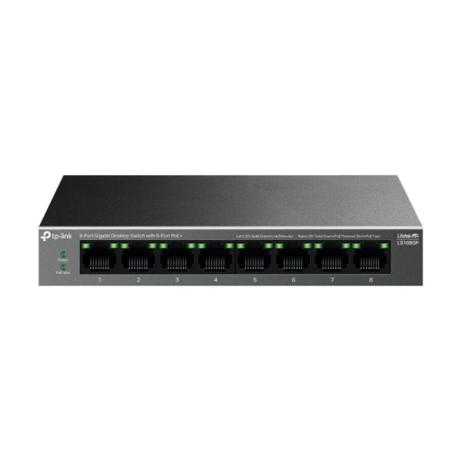 TP-Link LS108GP, küçük ve orta ölçekli ağ kurulumları için tasarlanmış PoE+ destekli gigabit switch modelidir. 8 adet 10/100/1000 Mbps port ile yüksek hızda veri aktarımı sağlar. PoE+ desteği sayesinde IP kameralar, VoIP telefonlar ve kablosuz erişim noktaları gibi cihazları doğrudan besleyebilir. Metal kasa yapısı dayanıklılık ve uzun ömürlü kullanım sunar.