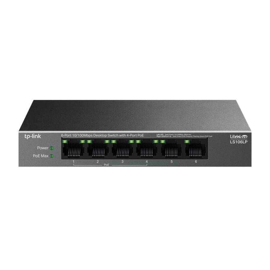 TP-Link LS109P, küçük ve orta ölçekli ağ kurulumları için tasarlanmış PoE+ destekli Fast Ethernet switch modelidir. 8 adet 10/100 Mbps PoE+ port ve 1 adet 10/100 Mbps uplink port ile toplam 9 port sunar. Metal kasa yapısı sayesinde dayanıklıdır ve uzun ömürlü kullanım sağlar. PoE+ desteği ile IP kameralar, VoIP telefonlar ve kablosuz erişim noktaları gibi cihazları doğrudan besleyebilir.
