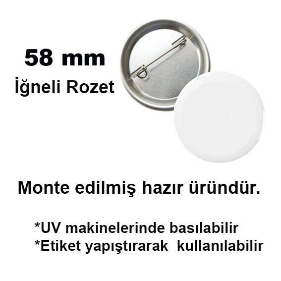 UV Baskı İçin 58 mm İğneli Buton Rozet