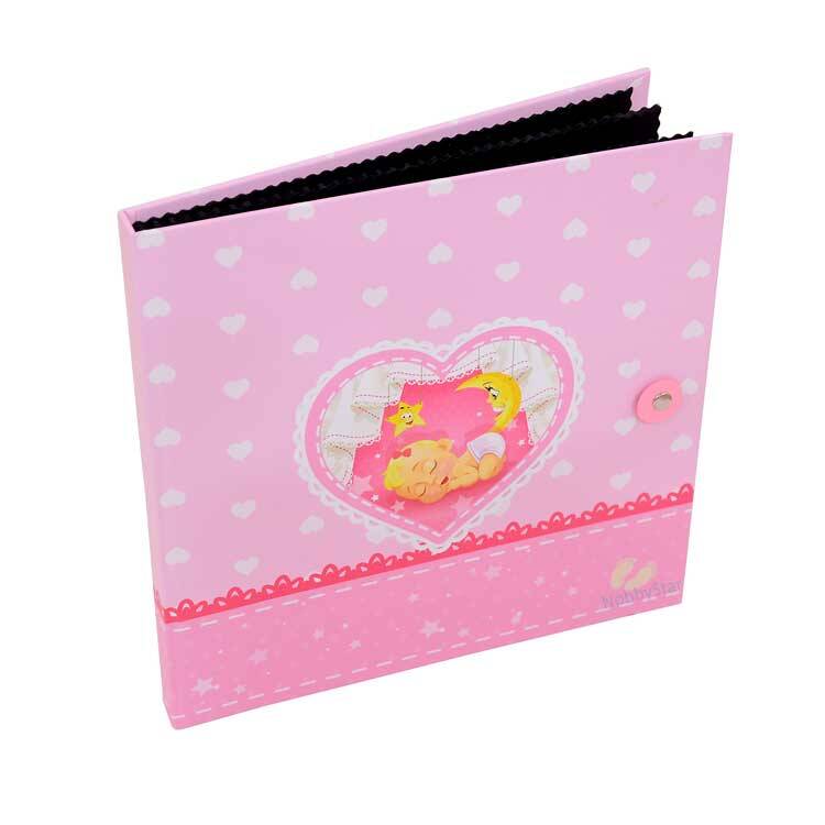 Sert mukavva malzemeden üretilmiş, ön kapak kısmında uykucu bebek figürü bulunan, 12 yaprak bebek anı defteri.