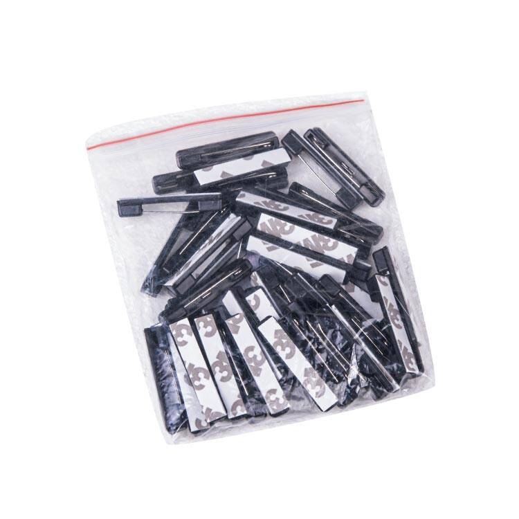 Yaka isimliğinin arkasına takabileceğiniz yapışkanlı isimlik iğnesidir. 50'li paket şekilde satılmaktadır.