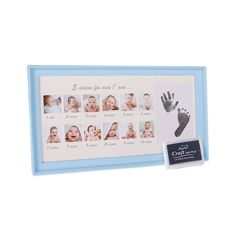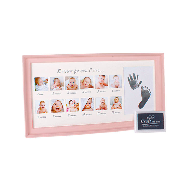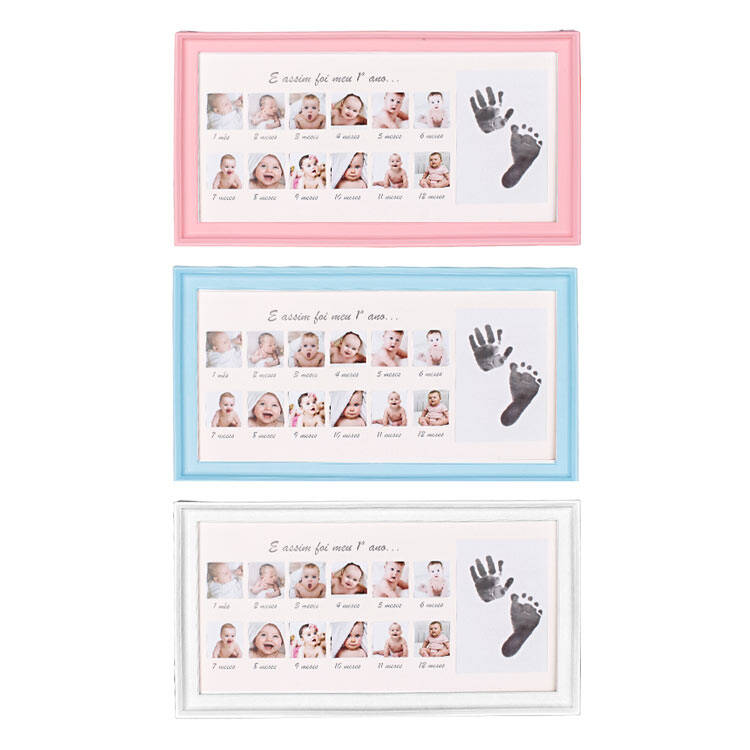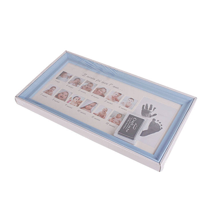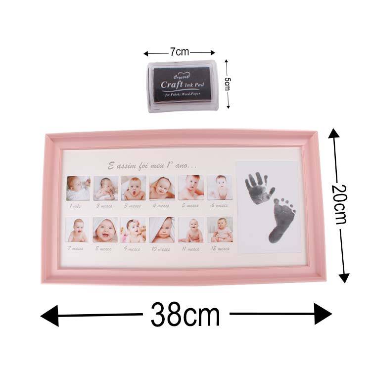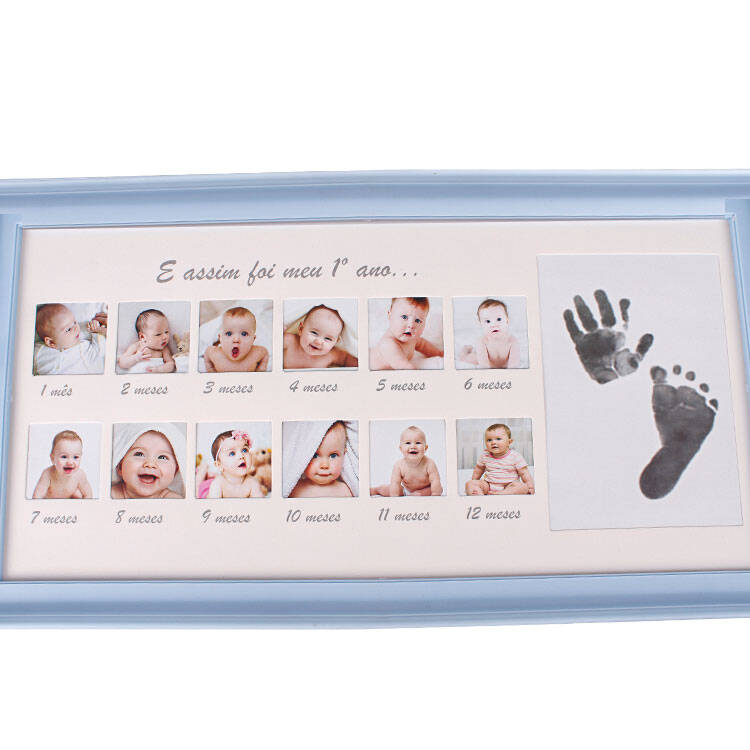 Bebeğinizin her ayı için 1 adet fotoğraf takabileceğiniz toplamda 12 ay alanına sahip bir çerçeve. İçerisinden çıkan mürekkep kutusu ile el ve ayak izi alabileceğiniz özel bir alan da bulunuyor. Arka ayaklığı sayesinde hem duvar hem de masaüstü kullanıma uygun yeni doğan bebek fotoğraf çerçevesi.
